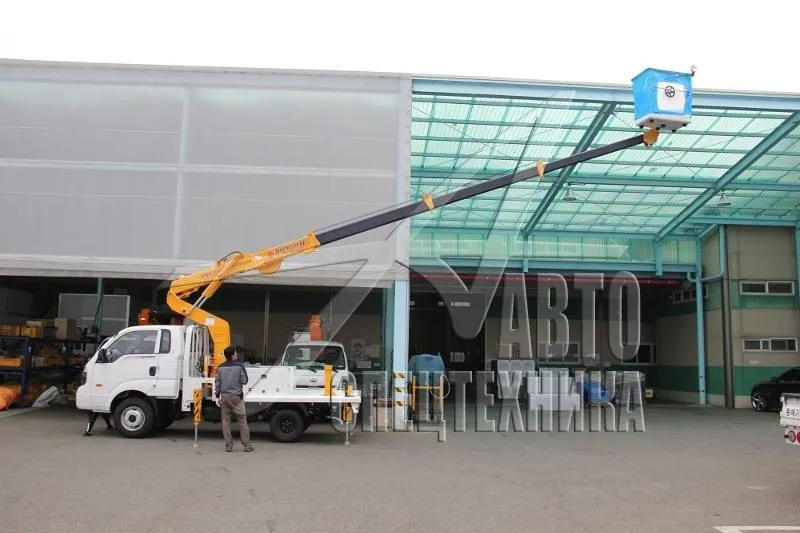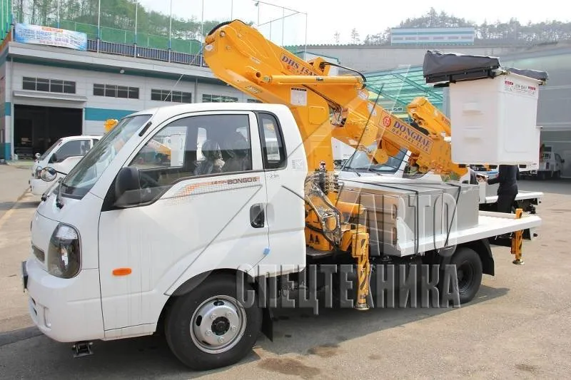 Автовышка Donghae DHS15AP корейского производителя Donghae Machinery подходит для работ в сферах городского и коммунального хозяйства в Пятигорске: выполнение электромонтажных работ, монтаж рекламных щитов и конструкций, ремонт кабельных линий. Также может использоваться в строительных работах. Она состоит из бортовой платформы и крановой установки с рабочей высотой стрелы 14,5 м.