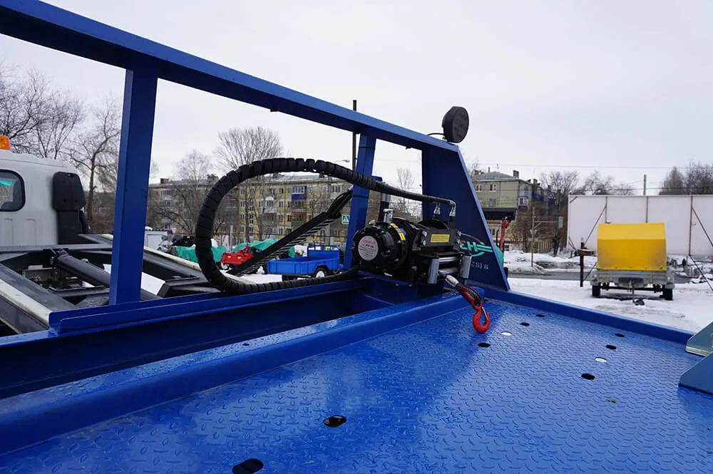 В комплектацию модели также входит гидролебедка с тяговым усилием 6,8 тонн. Следует отметить наличие эффективной гидросистемы, напорных рукавов высокого давления стандарта 2SN, высококачественного осветительного оборудования. Автовоз имеет всё необходимое для транспортировки автомобильной техники.