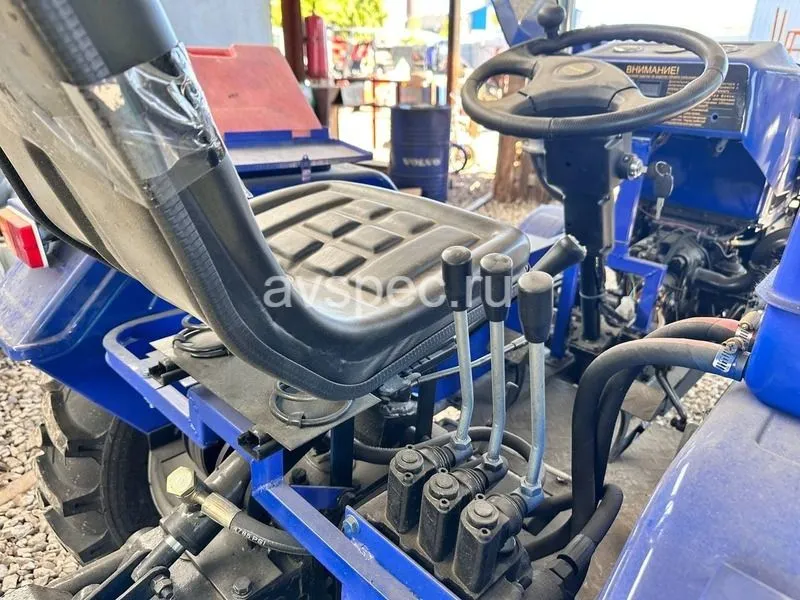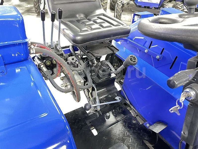 Принудительно блокируемый дифференциал обеспечивает трактору отличное тяговое усилие на любых работах - вспашке, культивации. Принудительно блокируя заднюю ведущую ось, вы исключаете пробуксовку трактора даже на самых тяжелых работах. Установлена регулируемая колея передних и задних колес 1000-1400 мм.